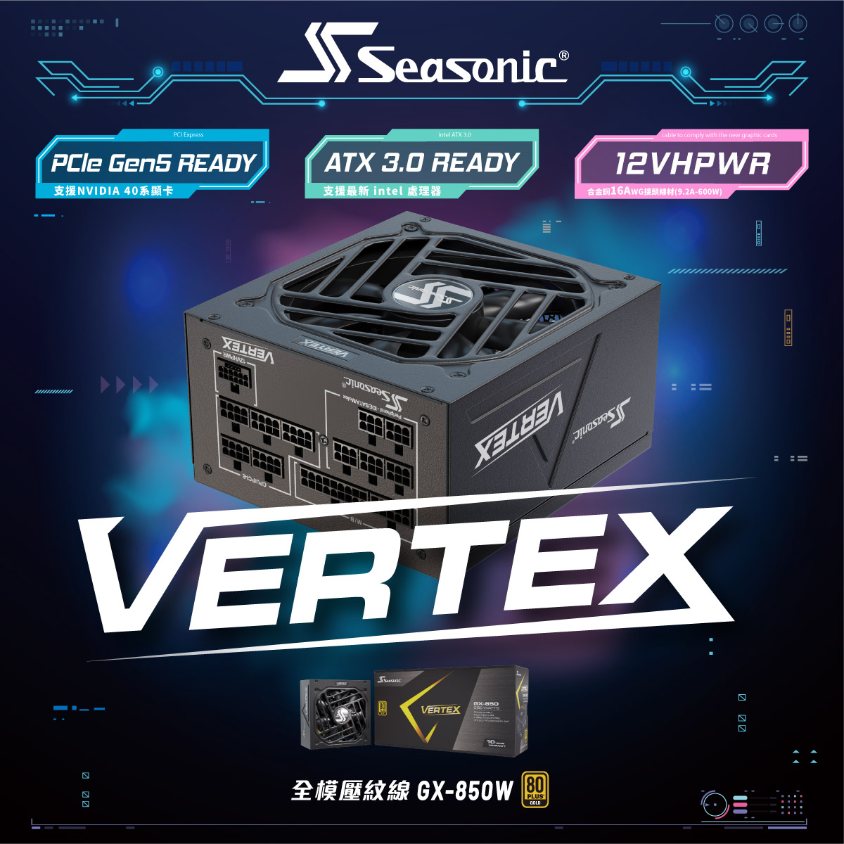 選擇海韻Seasonic Vertex系列電源供應器,讓各種遊戲體驗提升到全新高度。立即擁有,感受無限動力!