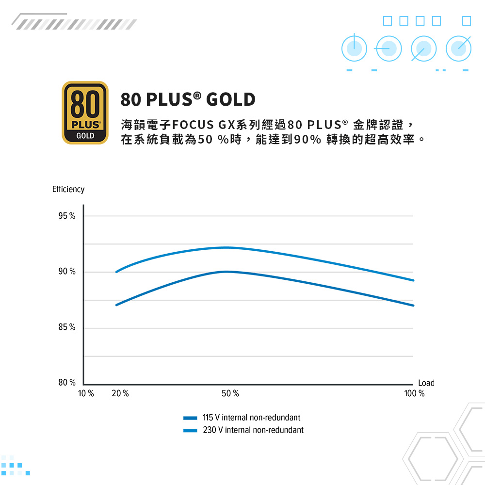 海韻電子的研發團隊運用多年的研究與經驗與打造全新機種,FOCUS GX系列即是其成果結晶,此系列的電源品質堅固,性能傑出。FOCUS GX系列電源不僅配有全模組化線材,140毫米的小體積也讓使用者的機箱選擇更多元。本系列包含80PLUS白金牌與金牌兩種效率。