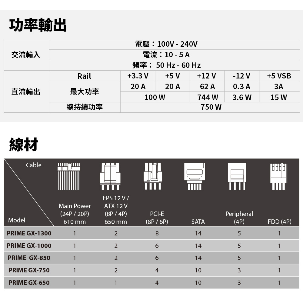 採用最高級海韻製程,領先市場技術和使用高品質零件。配備創新風扇控制,使風扇能夠在低負載時保持靜止,僅在溫度升高需要主動冷卻時動作。PRIME GX 750w 用戶將享有極高的可靠性和長期穩定性。該產品配備完整的模組化電纜,使安裝完全可定制,提供自主安裝和改善氣流的效果。