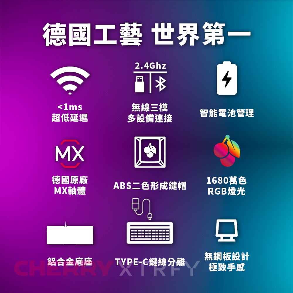 CHERRY MX Board 3.0S Wireless RGB 無線機械式鍵盤 (白色) (靜音紅軸)